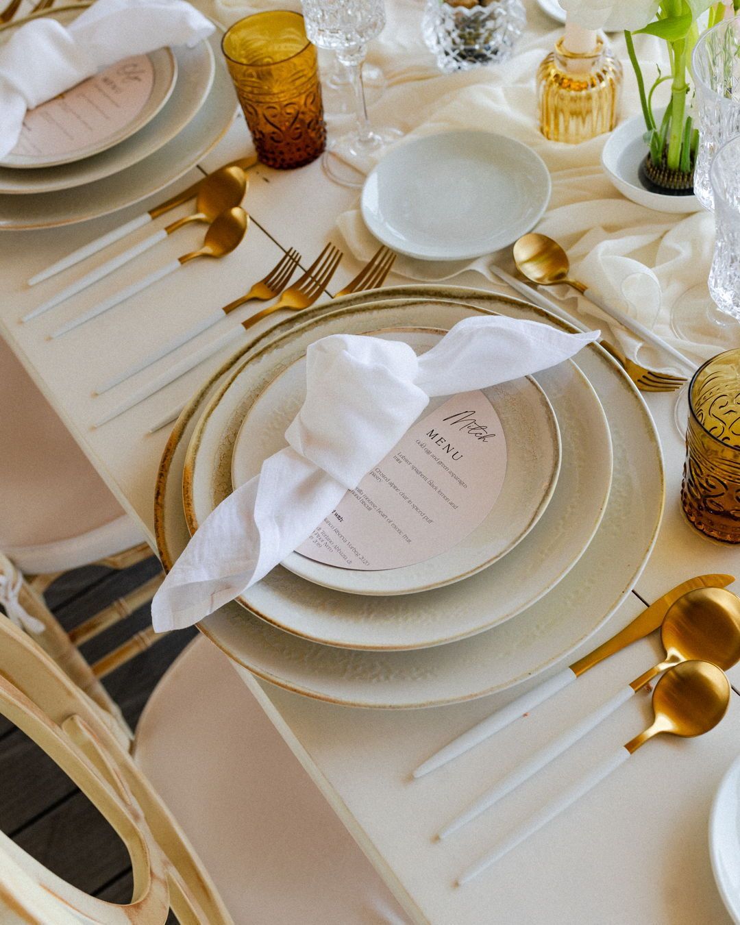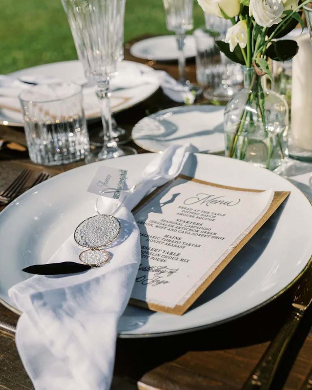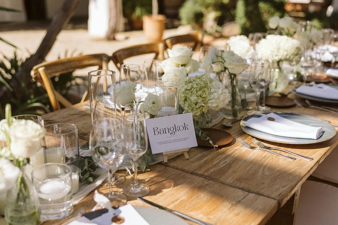 Desde los menús hasta los programas, tarjetas de agradecimiento, seating plans y todo tipo de señalización, nos encargamos de crear una papelería que armonice con la estética y el concepto de tu boda. Todos los elementos están coordinados con el diseño de las invitaciones, creando una experiencia visual coherente y única.